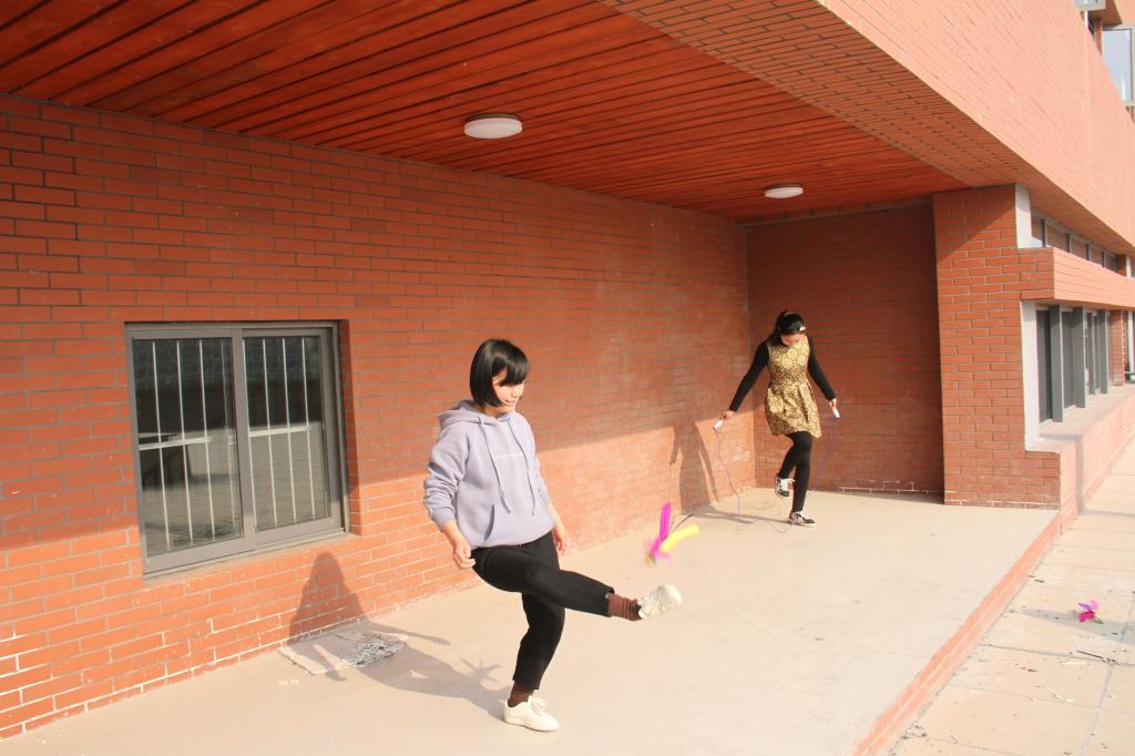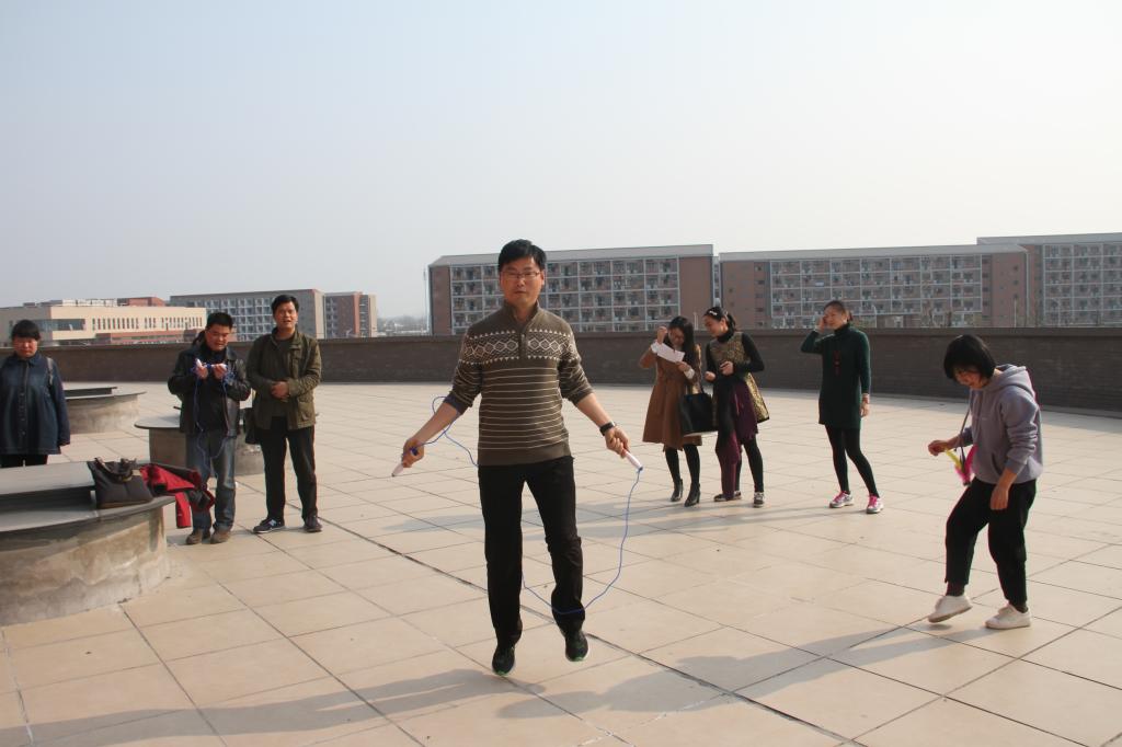 初春时节,阳光明媚,和风阵阵。从崇智楼三楼展望校园,教学楼、学生宿舍鳞次栉比,风景独好。比赛项目分为“一分钟跳绳”和“一分钟踢毽子”,学院全体女教职工参加了比赛。男教职工也兴致勃勃,踊跃参加。活动现场气氛热烈,加油声、欢呼声此起彼伏,充分展现了人文学院学院教职工积极向上的精神面貌,增进了学院的凝聚力和向心力。