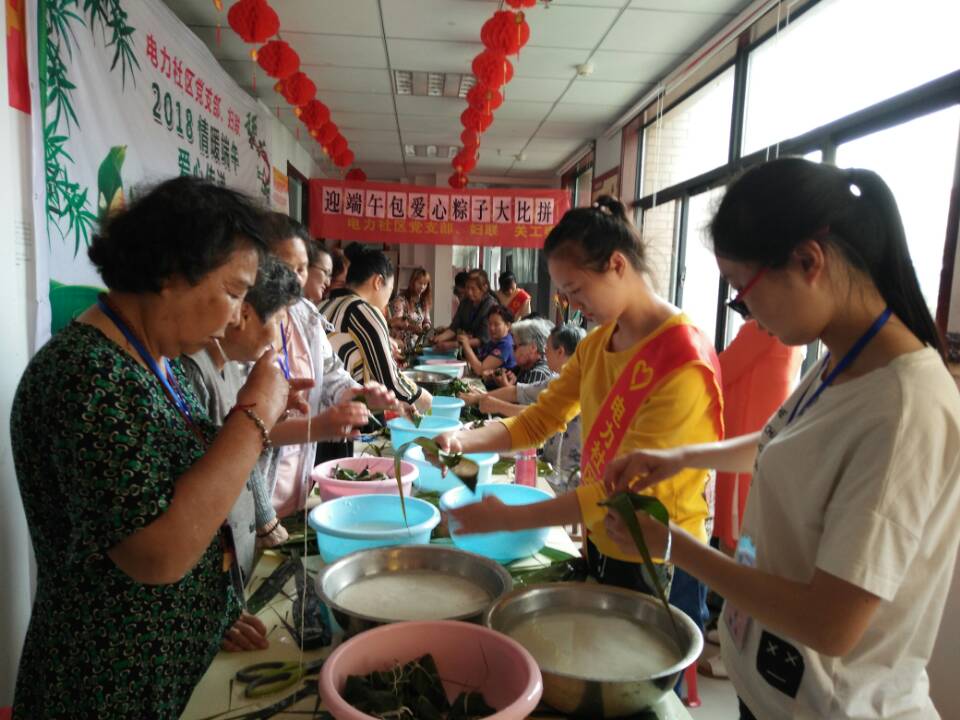 浓浓端午情,悠悠社工心。6月9日,安徽理工大学社会工作专业的学生进入电力社区进行专业实践活动,是继社区需求调研的又一次专业实实践活动。此次活动由电力社区党支部、妇联与关工委共同举办的迎端午活动。此次活动主要通过邀请社区内的老年人一同进行包粽子爱心大比拼,通过一个个小粽子让老人们充分参与,感受端午的气氛与社区的爱意。社工专业的学生积极热情的参与和良好的服务为此次社区活动的顺利举行贡献了重要力量。也深受社区领导和社区居民的肯定与认可。