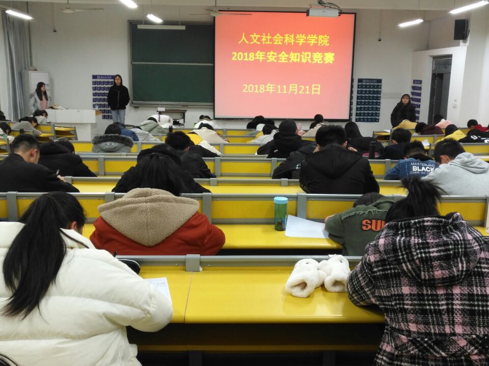 11月21日,为加强学生安全教育,提升学生安全意识,人文社会科学学院举办了大学生安全知识竞赛活动。此次活动旨在使广大学生在丰富有趣的竞赛氛围中增强安全防范意识,提高应对紧急事故的处理能力,共同营造一个安全有序的“平安校园”。