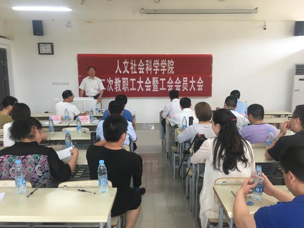 7月3日,人文社会科学学院四届二次教职工大会暨工会会员大会在崇智楼A333会议室隆重举行,学院党政主要负责人分别主持会议,学院领导班子成员、全体教职工及工会会员参加会议。