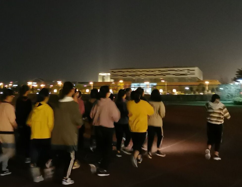 夜跑由班级组织委员、体育委员、纪律委员牵头执行。同学们在宿舍下、操场边排列整齐,在体育委员的带领下前往既定场地,洒下夜跑的汗水,按照计划有序完成了第一天的任务。此次夜跑活动鼓励新生走出寝室,用双脚丈量学校,在锻炼中提高身体素质,提高班级团结力凝聚力向心力。