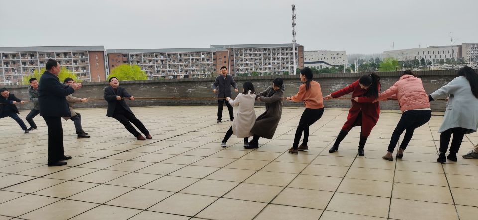 活动包括呼啦圈比赛、跳绳比赛和拔河比赛。回环飞舞的呼啦圈衬托出女教职工婀娜的身姿,上下翻飞的跳绳掩映着女教职工敏捷的脚步。最后的拔河比赛将庆“三八”活动推向高潮,由女教职工组成的“巾帼”队和男教职工组成的“须眉”队展开了激烈争夺,最终“巾帼”队以2:0 的分数取得胜利。
