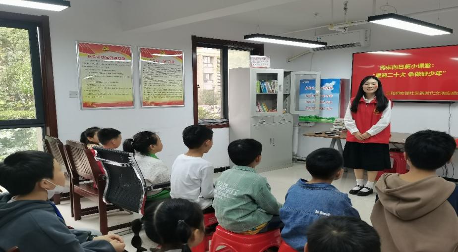 值此喜迎二十大之际,为激发社区少年儿童的爱党爱国情怀,安徽理工大学人文社会科学学院2020级社会工作专业学生在张小红老师的带领下在安理社区“新时代文明实践站”成功举办了一场社区实践活动。