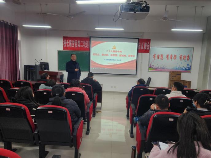 为持续深入学习贯彻党的二十大精神,12月1日下午,人文学院在崇智楼A329报告厅举办党的二十大精神学习报告会。学院党委书记王大贤、院长方胜、党委副处级组织员姚嗣宏以及40余位教职工参会。报告会由王大贤主持。