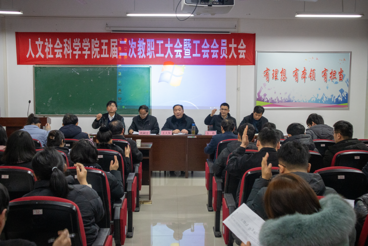 2月9日下午,人文社会科学学院五届一次教职工大会暨工会会员大会在崇智楼A329报告厅隆重召开,学院领导班子成员、全体教职工参加会议。会议由学院党委书记王大贤主持。