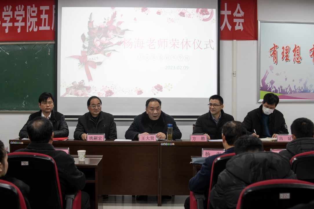 为进一步贯彻落实习近平总书记关于师德师风建设的重要论述精神,大力弘扬尊师重教的优良传统。2月9日下午,人文学院分工会为杨海老师举行了荣休仪式。学院班子成员和全体教职工参加杨海老师的荣休仪式,仪式由党委书记王大贤主持。
