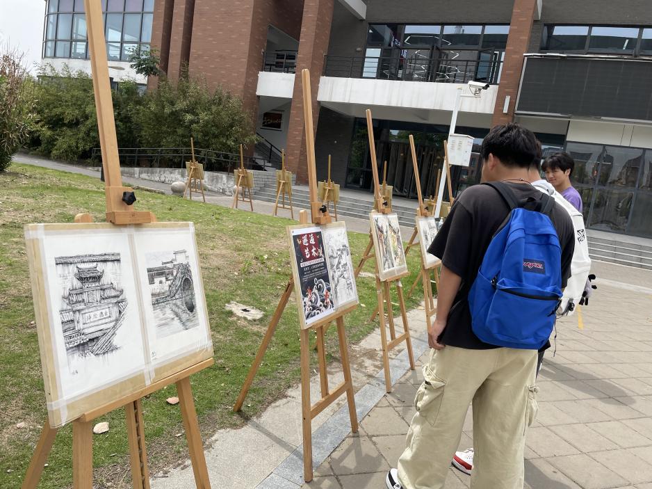日前,人文学院在学校图书馆门前广场、仁苑食堂门口举办了为期3天的大学生实践写生画展,展出他们在皖南古村落采风创作的作品。