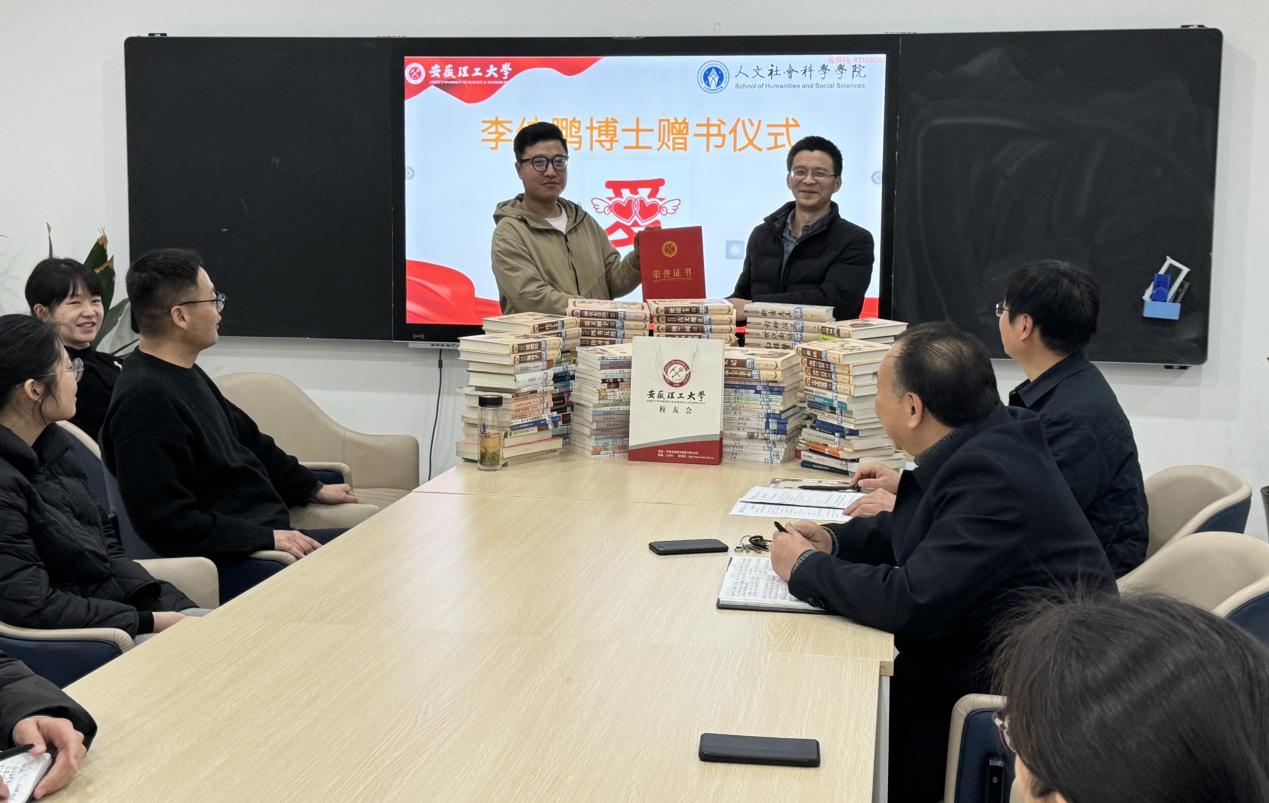 3月27日下午,人文学院在321教室举行李佳鹏赠书仪式,学院党委书记王大贤、院长方胜、党委副书记周雪晴、副院长代大为以及人文学院部分师生参加本次图书捐赠仪式。