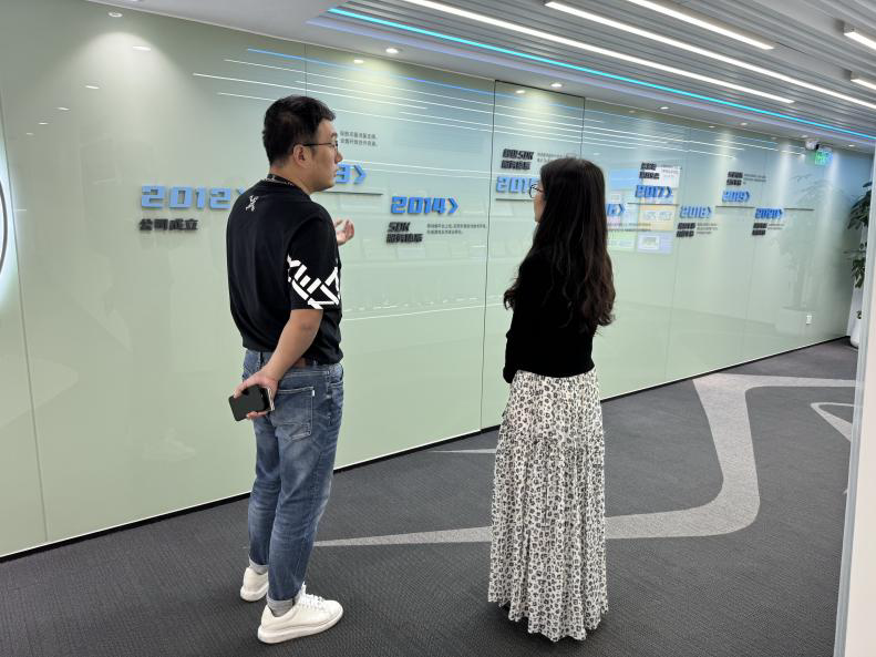 公司董事长潘晓旭、渠道总监吴波热情接待,并陪同参观交流。在参观过程中,吴波针对公司基本情况、专业领域、发展历程及前景等方面进行了详细介绍。座谈会上,潘晓旭根据目前公司发展趋势谈及到部分岗位的人才需求,周雪晴结合公司的人才需求介绍了人文学院的基本情况,以及相关学科(动画、网络与新媒体)毕业生的专业技能、人才类型等信息。双方就人才培养、学生就业、实习培训等方面事宜进行了深入交流,以期能在动画专业招聘及培训等方面达成长期合作。接下来,将继续多渠道探寻合作机会,努力创建院企合作平台,助推我院毕业生高质量就业。