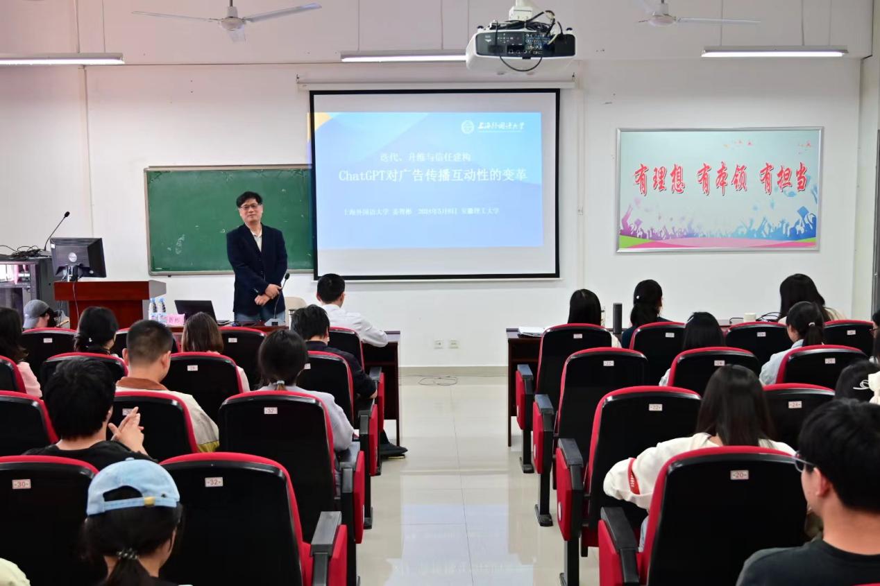近日,为进一步提升新传专业学生的实践能力、拓展现代广告视野,人文学院邀请上海外国语大学教务处长、博士生导师、姜智彬教授开设百川大讲堂,分享ChatGPT对广告传播互动性的变革经验。讲座由人文学院院长方胜主持。