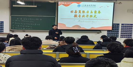 2024年12月17日晚,公务员能力与素养微专业精彩开班。人文学院吕延主持开班式,方胜为70位选修该专业的同学热情致辞。