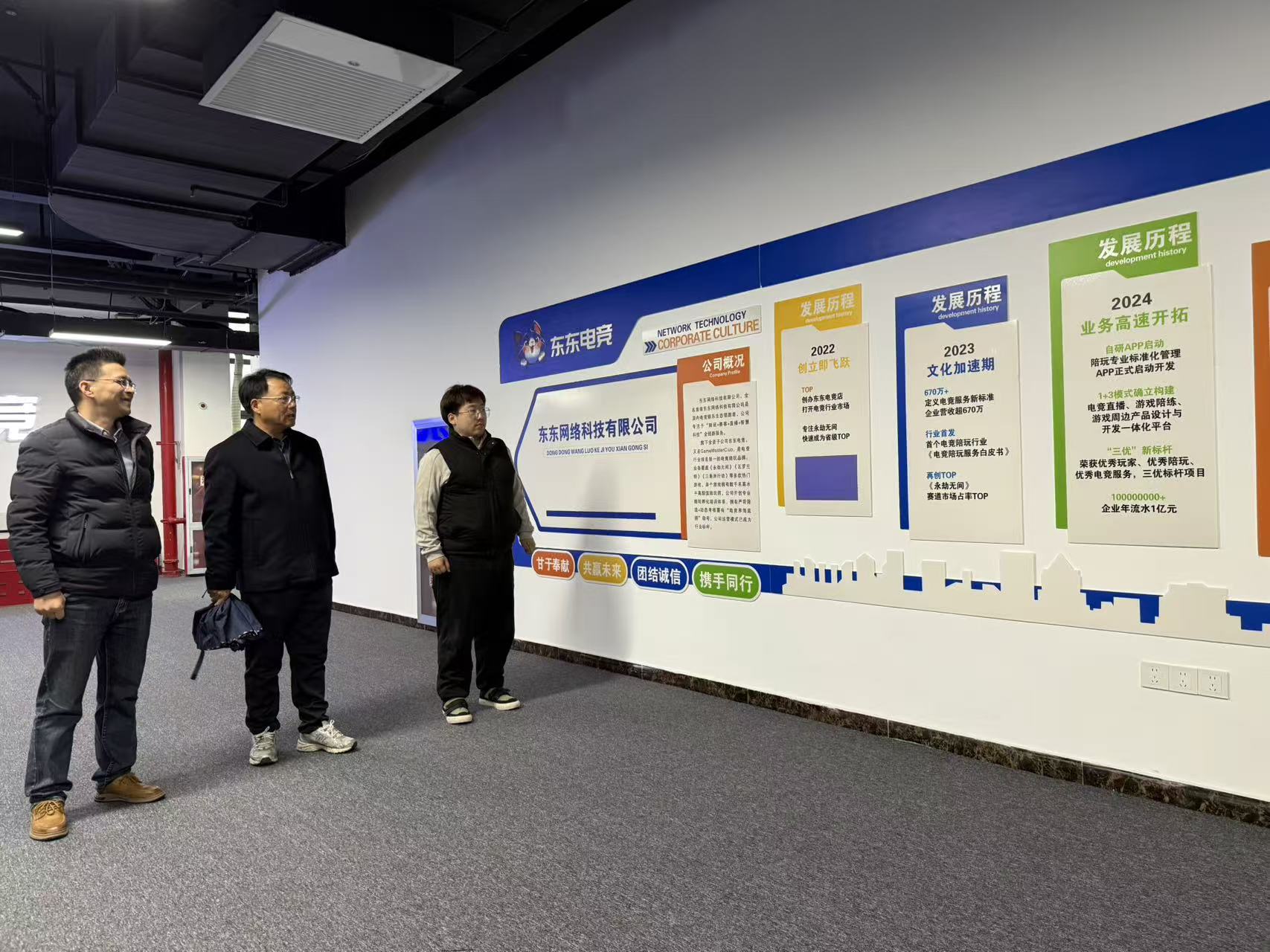 刘旭东热情接待王书记一行,详细介绍了公司的运营现状、业务布局及人才需求情况。作为人文学院毕业生,刘旭东在校期间便开启创业之路,创立东东电竞,经过多年发展,目前公司业务包含软件开发、人工智能应用软件开发、网络与信息安全软件开发、电竞信息科技等。他始终心系母校,在人文学院设立“旭东奖学金”,以实际行动回馈母校培养、助力学生成长。
