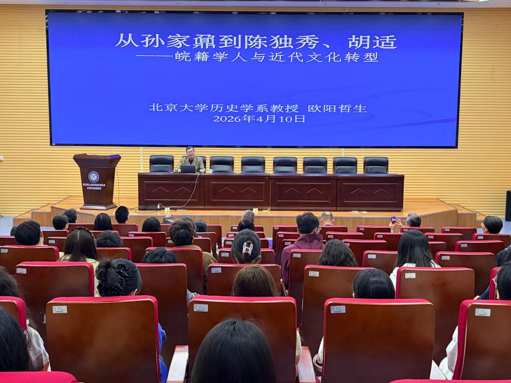 4月10日下午,应人文社会科学学院邀请,国家级人才、国家社科基金重大项目首席专家、北京大学历史系欧阳哲生教授,在全国重点实验室报告厅作了题为《从孙家鼐到陈独秀、胡适——皖籍学人与近代文化转型》的学术报告。我校特聘教授、北京大学历史系郭卫东教授出席报告会并做精彩点评。