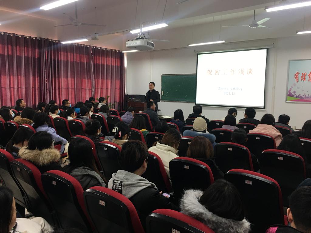 为进一步强化保密思维,树立保密意识,落实保密工作具体要求,12月28日,人文学院与经管学院联合举办保密知识讲座,邀请淮南市国家保密局李季副局长作题为“保密知识浅谈”的报告。人文学院与经管领导、教职工、各班级学生干部参加了讲座。