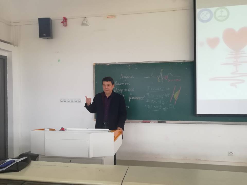 交流会上,我校兼职教师、淮南市第一人民医院护士长蔡福临作了心绞痛诊断示范教学。