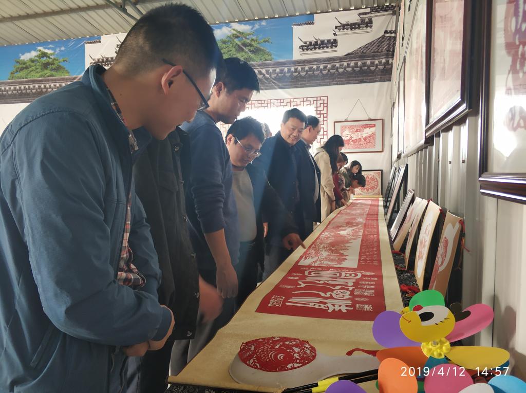 4月12日下午,人文学院工会组织学院教职工前往淮南市淮南春风琴韵传统手工艺美术品基地参观非物质文化遗产——剪纸,除请假外,学院共22名教职工参加了此次活动。