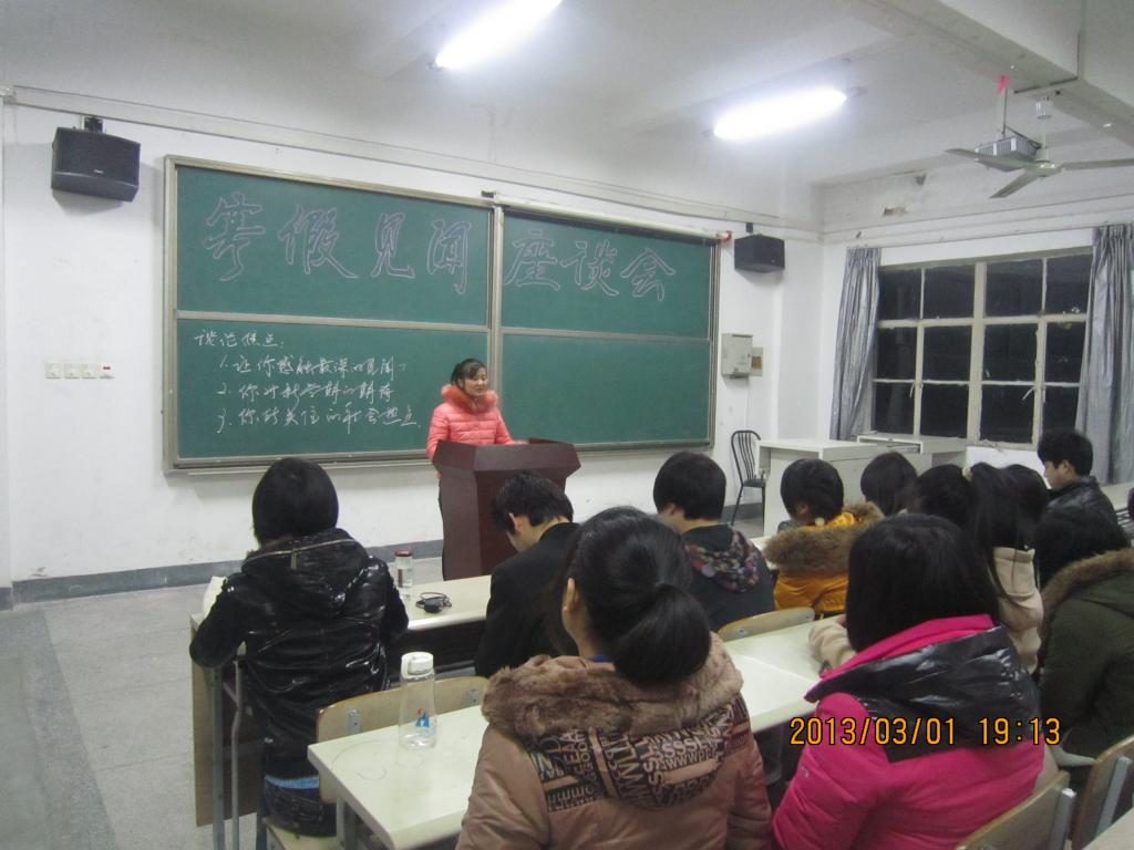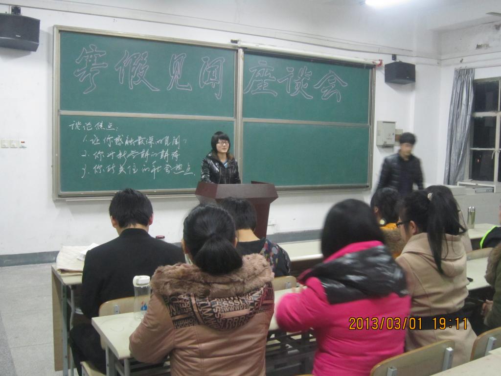 2013年3月1日晚6:30,人文学院学生会在院401教室召开寒假座谈会,了解学生寒假期间学习、生活、社会实践活动情况。座谈会由院学生会副主席赵天涯主持。部分学生会成员和普通学生出席本次座谈会。