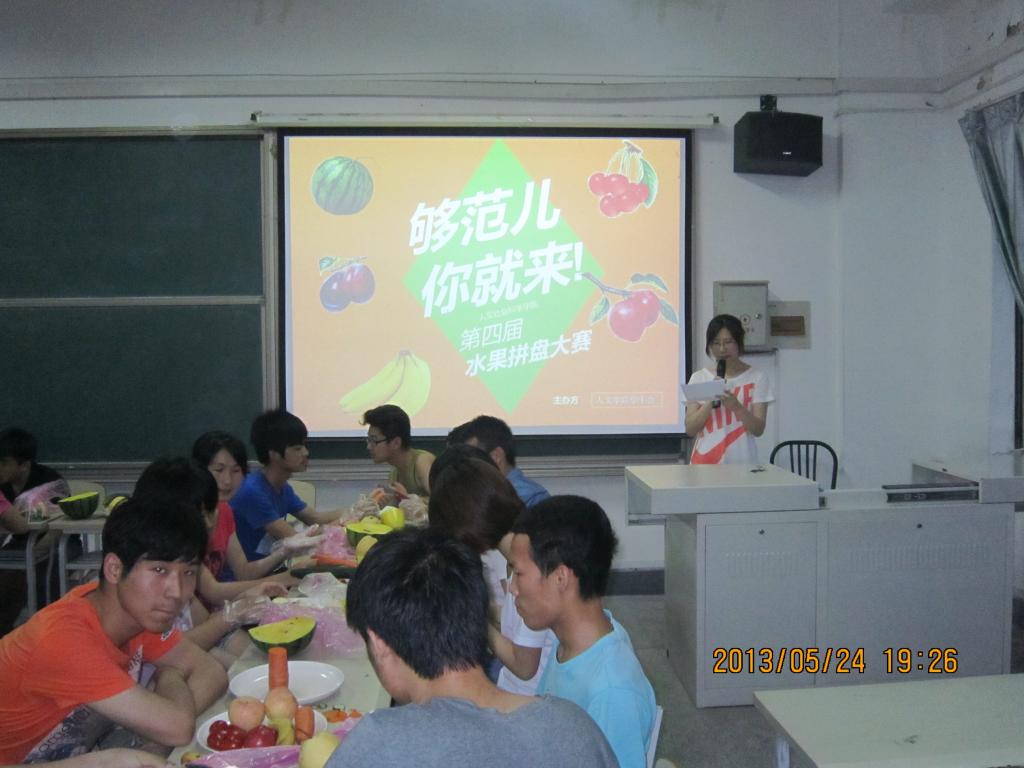 5月24日晚7点,第四届水果拼盘大赛在人文楼401室隆重拉开帷幕。本次活动以创新、文艺、团结和富有创意为准则,利用水果进行无限创新的设计,出席该活动的评委为院学生会各部部长。
