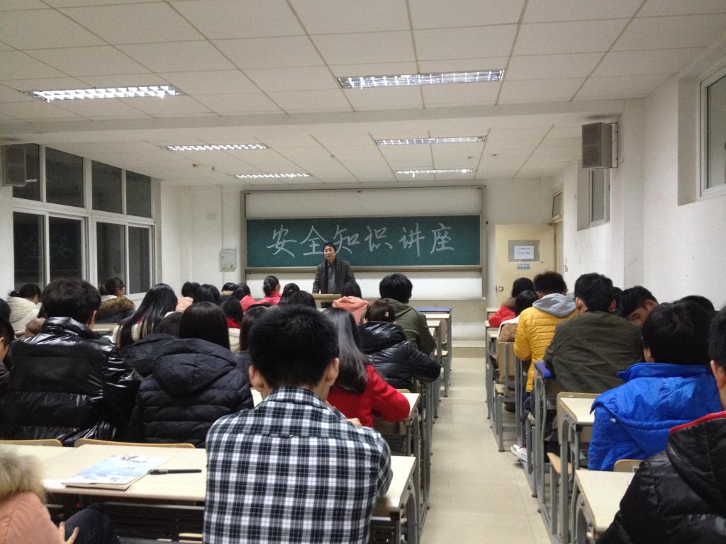 12月4日晚7:00,人文社会科学学院在北3604教室举办了安全知识讲座,开展学生安全教育,拉开了安全月教育活动的帷幕。本次讲座主讲人为校保卫处秦淮滨老师,学院团委书记陈会和13级全体学生聆听了讲座。