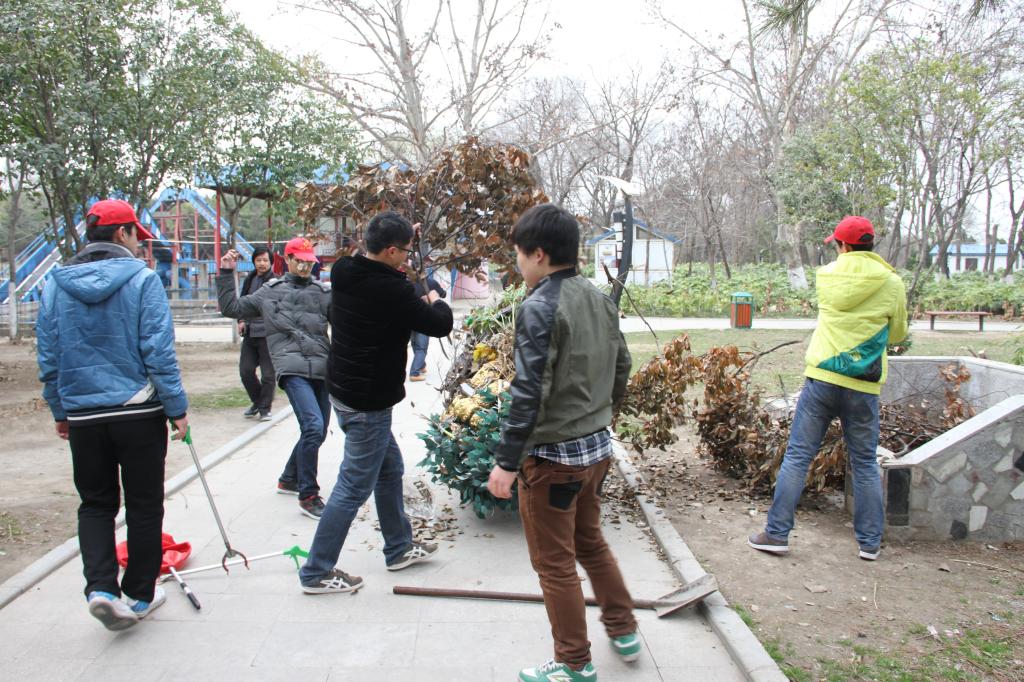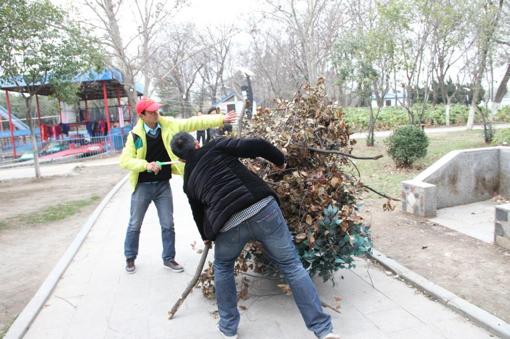 志愿者到达龙湖公园,与公园负责人联系之后得知,经过一个冬天,公园里现在有许多枯枝需要修剪整理,许多地方也成为了垃圾死角,因此需要大量的人力来帮忙清理公园,迎接春天的到来。针对此种情况志愿者们立刻在公园负责人的指引下开始了清洁龙湖公园的行动。在公园各处进行清扫垃圾活动,哪怕是再小的烟头也不放过;帮助修剪枯枝的志愿者们也在工作人员的指导下开始熟悉了工作。当两个小时候的的清洁活动结束后,志愿者的热情和付出得到了公园工作人员和过往市民的一致赞扬。