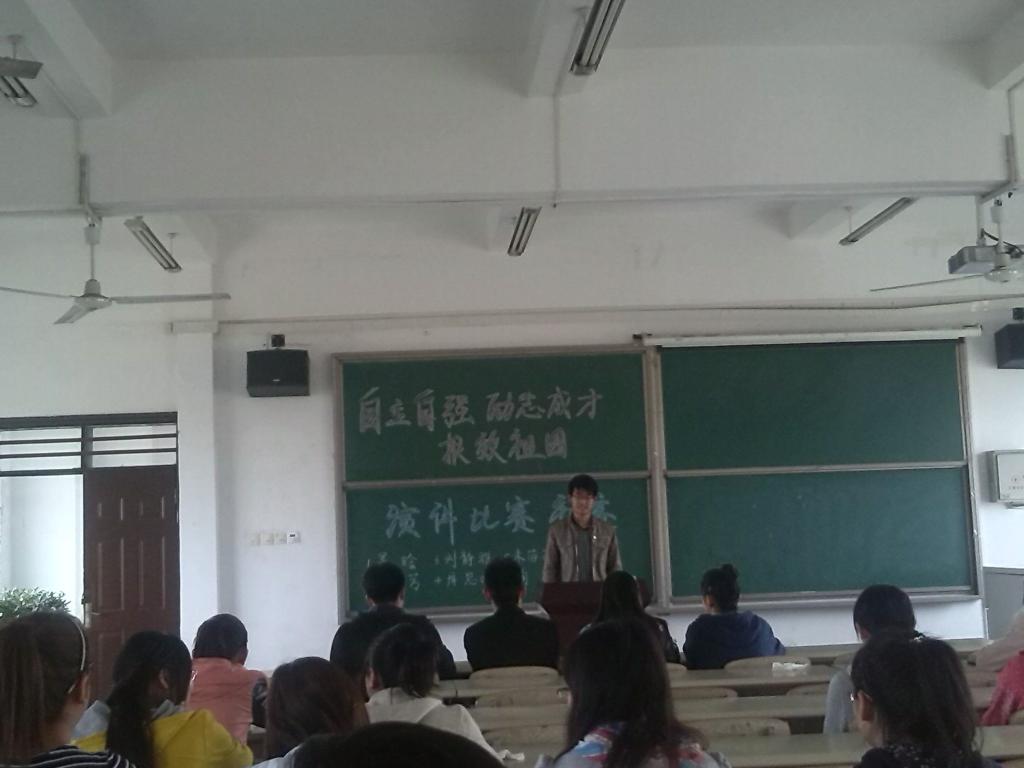 4月27日下午4点,人文学院“自立自强、励志成才、报效祖国”大学生演讲比赛在学院楼401教室举行,学生会全体成员及参赛选手到场。人文学院团委书记陈会,院学生主席王晓栋,学生会各部部长以及政治学12级、13级部分同学参加了本次比赛。