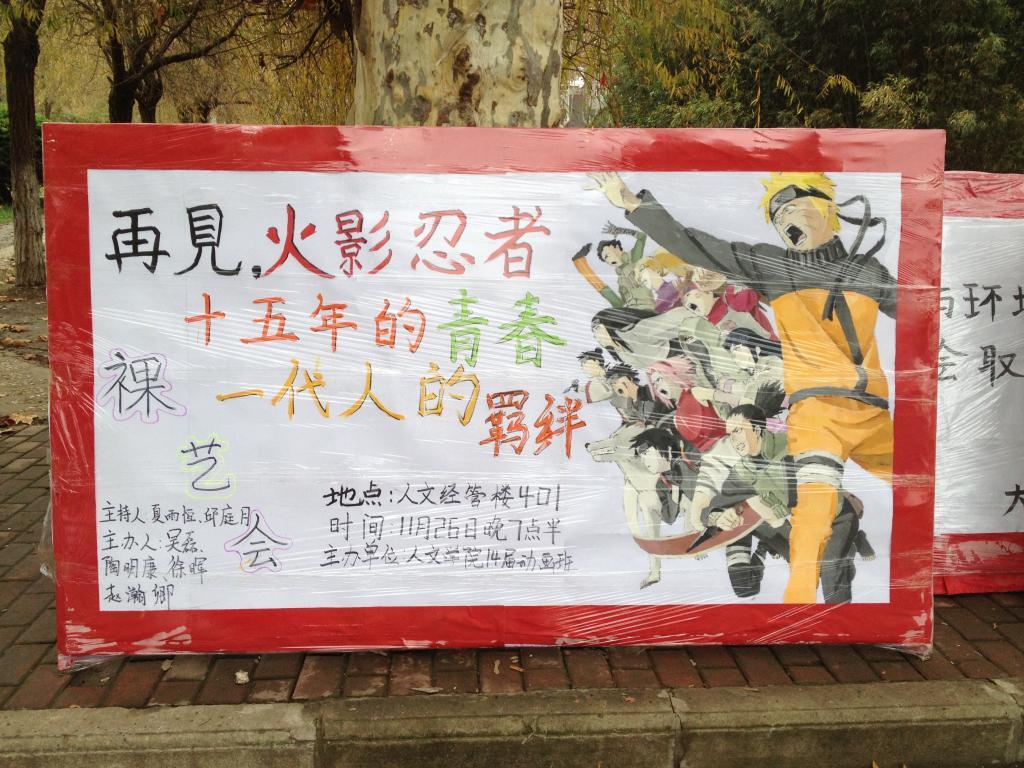 此次裸艺会的影片是日本漫画家岸本齐史的代表作《火影忍者》。此影片以友情、团结、成长等主题给观众留下了深刻的印象。在该影片中我们看不到文化侵略,也看不到思想极端。有的只是对梦想的追求,对梦想努力拼搏的精神和纯真的友谊。最后,老师和同学们充满新意的点评更是赢得了同学们的一片掌声。