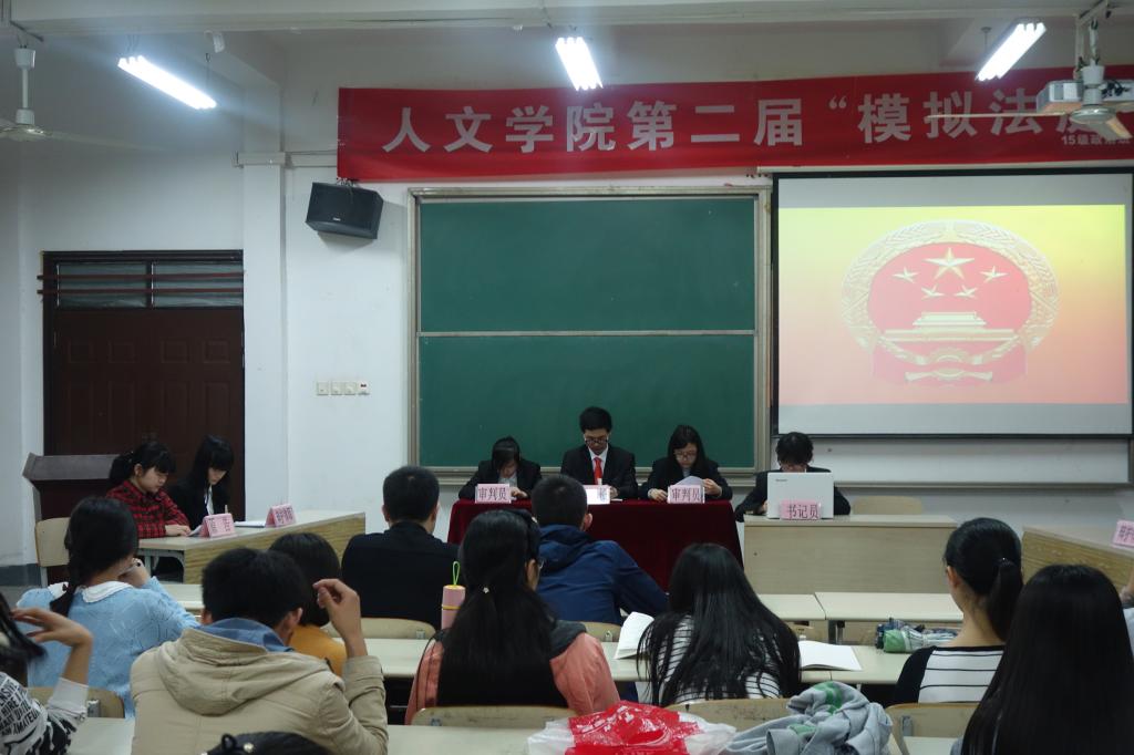 4月19日,人文学院在学院楼401教室成功举办人文学院第二届模拟法庭活动。
