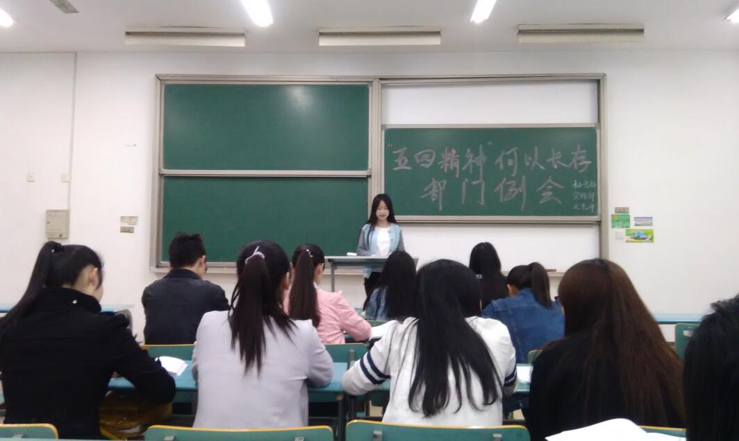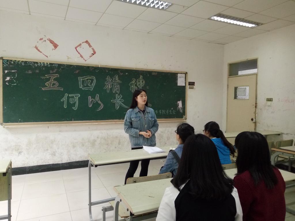 结合到实际生活,大家认为作为一名大学生,只有认真学习,不断开拓进取,把自己培养成一个对社会,对国家有用的人才,这才是我们对“五四精神”最好的继承与发扬。石伊可同学提到作为学生会成员,我们应当在其位谋其政,认真积极做好自己份内的事,坚持履行“为学生服务”的宗旨,急同学之所急,应同学之所需,为广大同学奉献自己的一份力量。
