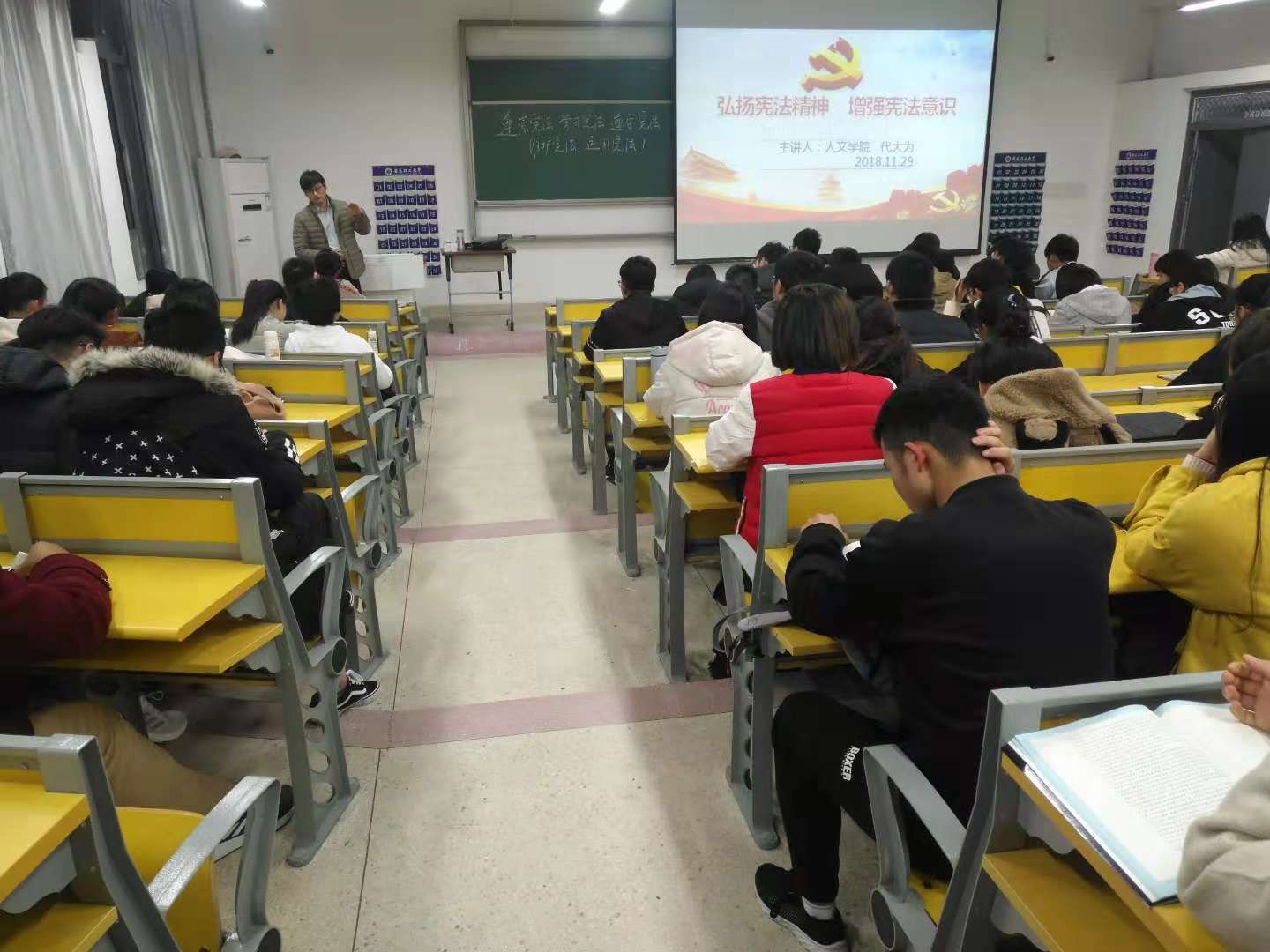 2018年11月29日,人文社会科学学院在天工南216教室举办“弘扬宪法精神,增强宪法意识”为主题的法律知识讲座。