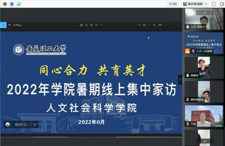 6月30日晚上,学院通过腾讯会议平台开展2022年暑期线上集中家访。学院领导班子出席会议,会议由姚嗣宏主持。学院全体专职辅导员、学生资助宣传大使、学生干部代表以及学生家长240余人参加了线上家访会。会上,学院党委书记王大贤勉励学生要磨砺意志、克服困难,保持积极健康、乐观向上的人生态度,并对学生暑期学习生活提出了要求,提前规划好自己的学习生活,做好大学阶段的学习规划,确立奋斗目标。院长方胜就学院近期建设发展情况作了介绍,并详细地说明学院就业、考研等方面取得的成就,鼓励学生积极考研。学院资助联系人吴志兴介绍了学校学生资助政策。最后,就家长关心的专业发展前景、考研情况、就业方向等问题进行了深入的交流。