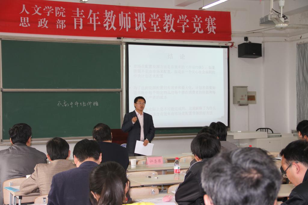 4月19日下午,院部在北校区人文思政楼401教室举办青年教师课堂教学竞赛活动。此次活动聘请教务处、人事处、学生处、工会、宣传部、经管学院、外国语学院等专家作为评委,院部教师参加了观摩。