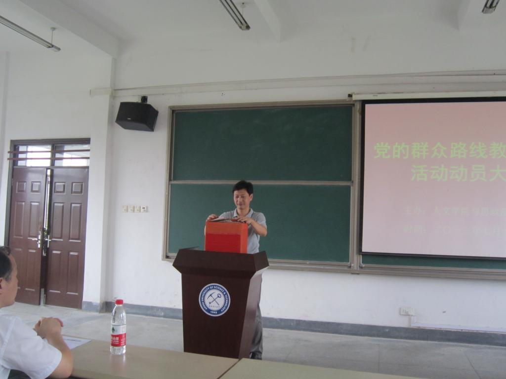 7月16日上午,人文学院与思政部党委召开党的群众路线教育实践活动动员大会,副校长、校党的群众路线教育实践活动第六督导组长郭永存,副组长王大贤出席大会。会议由思政部主任徐其清主持,院部全体党员参加了大会。