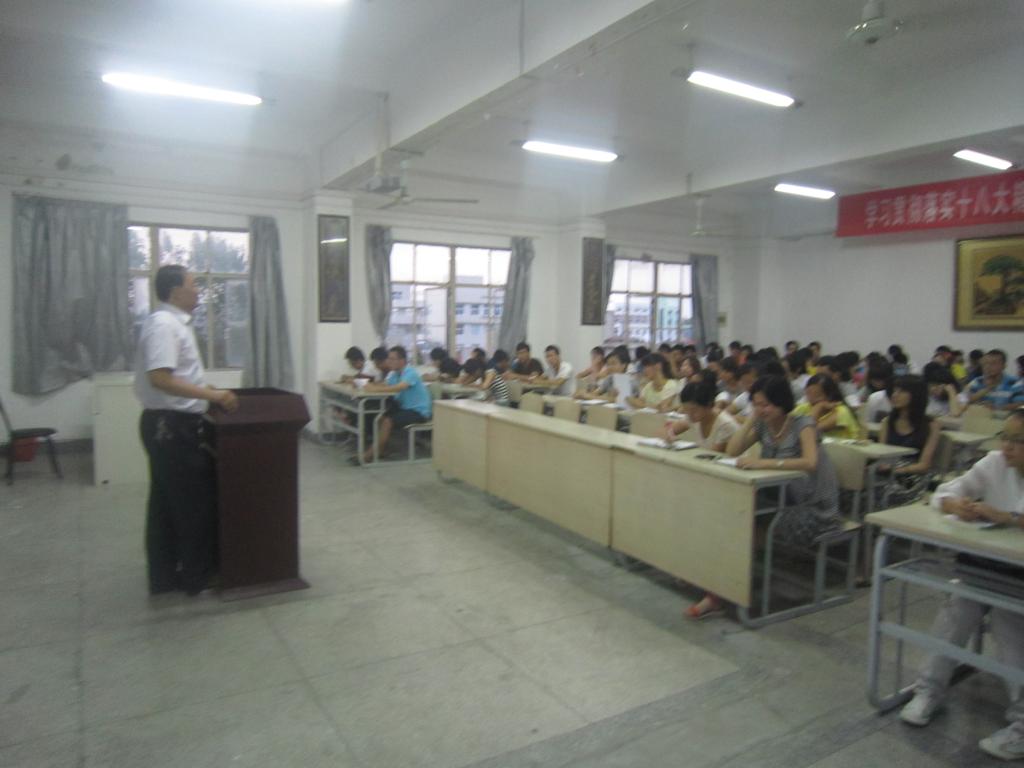 9月1日晚6:30,我院新学期学生大会在学院楼401教室召开。学院副书记、副院长吴云平主持会议。辅导员张娜老师、学院团委书记陈会老师以及学院全体学生参加了会议。
