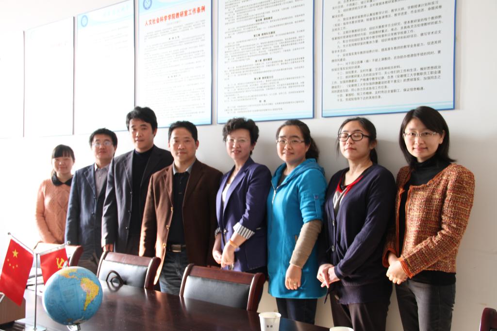 3月23日下午, 淮南师范学院政法系秦元春教授一行来我院调研。我院院长杨力教授、思政部主任徐其清教授、政治学系主任莫良元教授及政治学系全体教师在学院414室共同就院系发展、学科建设、师生培养等交换意见。