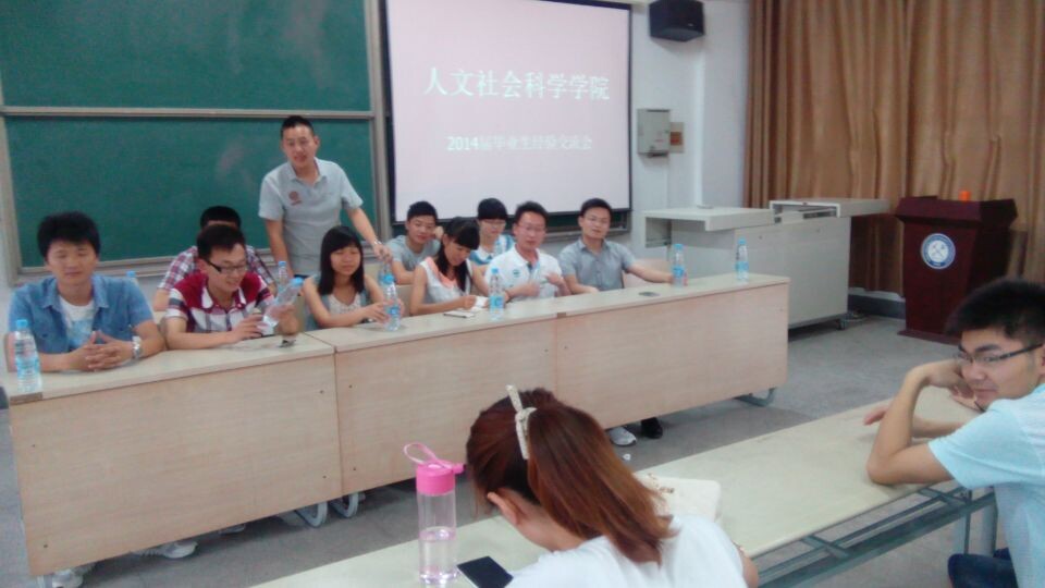 2014年5月30日,人文学院举办毕业生与在校学生交流会,开展“传经验活动——让学弟、学妹分享自己学习、就业、考研经验”活动。