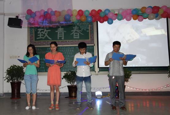 6月5日,人文学院于学院401教室举办“致青春”毕业欢送晚会。晚会诚邀人文学院领导、老师和全体毕业生参加,共同度过一个难忘夜晚。在晚会前部分,人文学子以歌曲、舞蹈、相声等节目展现了一个快乐活泼的大学生活,期间用师生共同朗诵的形式抒发了师生之间深厚的情感,最后毕业生深情演唱歌曲《那些年》将晚会推向高潮,用歌声表达了自己对大学生活的眷恋与不舍。晚会结束后,毕业生们与学院领导、老师和学弟学妹们拍照留念,一张张泪痕划过的笑脸随着快门声永远存在了全体师生的记忆之中。