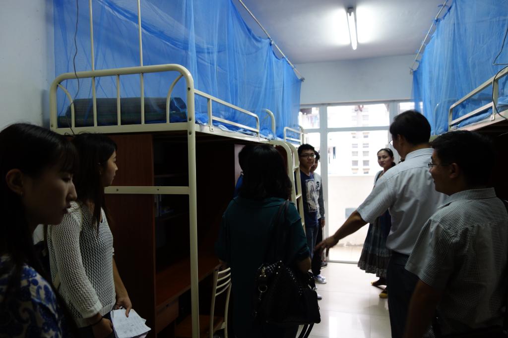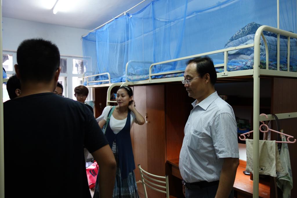 9月14日下午,学院分管领导,辅导员、班主任老师,学生辅导员助理来到新生公寓,看望新生同学,与同学亲切交流。老师们仔细询问新生同学到校后的情况和感受,了解他们的需求,指导同学正确使用电器,搞好安全防范,帮助新生同学尽快适应大学生活。