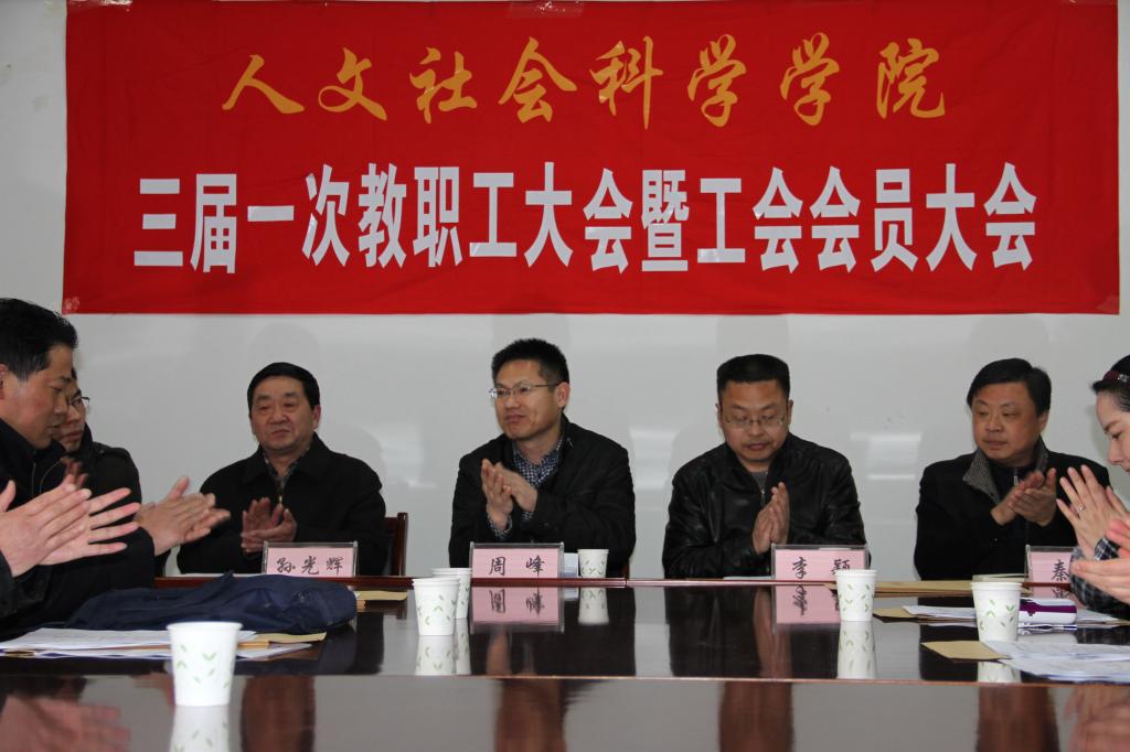 3月1日下午,人文社会科学学院三届一次教职工大会暨工会会员大会在庄严的国歌声中开幕。校纪委书记周峰出席大会并致辞,校工会副主席李颖应邀出席大会,学院全体教职工和工会会员参加大会。大会分别由学院党总支书记秦朗和院长杨力主持。
