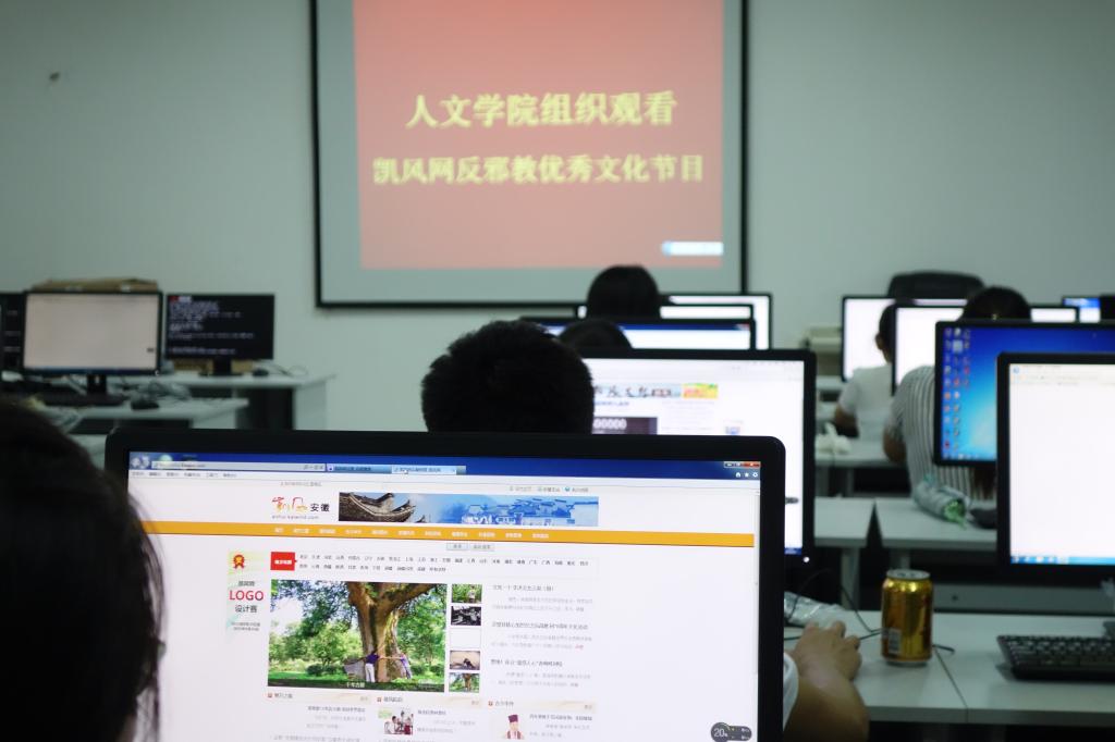 人文社会科学学院高度重视这次反邪教宣传,9月7日—14日,采取分散学习和集中观看相结合的方式,组织师生登录观凯风网观看《反邪教优秀文艺节目展播》。这次展播的反邪教优秀文艺节目形式多样,内容深刻,特别是一些通过真实案例改编的节目,令师生观看后深感震撼,提高了师生识别和抵制邪教的能力,了解到了守护精神家园的必要性。