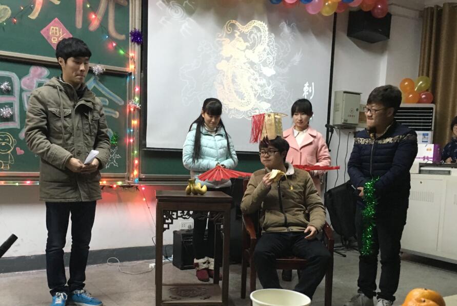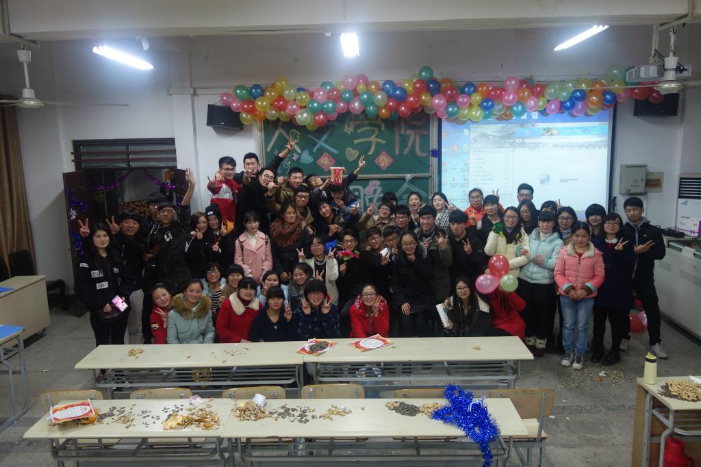 欢乐点亮元旦,魅力尽在人文。12月27日晚,人文学院在学院楼401教室举办2016年元旦晚会。学院党总支副书记、副院长吴云平,学院团委副书记陈会,辅导员张娜和2015级全体同学参加了晚会。