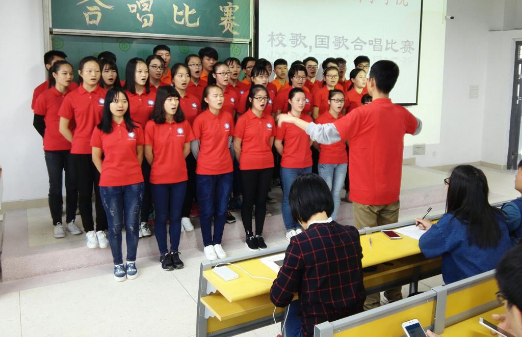 参赛新生以班级为单位,演唱了国歌、校歌两支歌曲。随着网络与新媒体16-1班的嘹亮歌声,比赛正式开始,同学们整齐划一的服装和饱满的精神状态,顿时让现场充满了令人激动的气氛。随后,动画、政治、社会工作3个参赛班级依次登台演唱,那洪亮而优美的歌声,唱出了当代大学生的朝气,唱出了当代大学生的心声,唱出了当代大学生对祖国和学校的自豪之情。