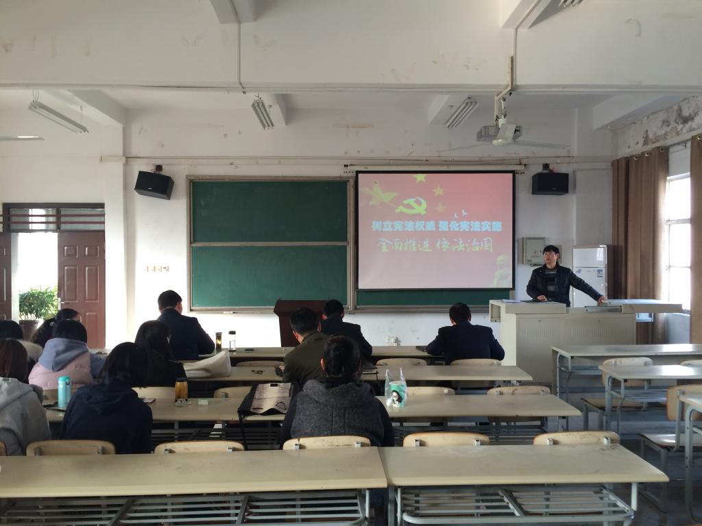 学习会邀请人文素质发展中心主任代大为副教授作了题为《树立宪法权威 强化宪法实施 全面推进依法治国》的学习报告。报告从树立宪法权威的价值、强化宪法实施的任务要求、宪法实施的基本现状与完善路径等三个方面,结合胡锦涛同志和习近平总书记关于依宪治国依宪执政的重要论述,深入阐述了宪法发展和民主法治的世界潮流、实施宪法的前提是坚持党的领导、当代中国宪法实施面临的机遇等内容。学习会促进了学院党员领导干部和一线教职工自觉崇尚宪法、遵守宪法,起到了普及宪法知识、提高宪法意识的良好效果。