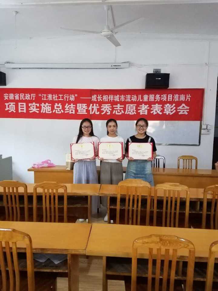 人文学院社会工作专业学生在“江淮社工行动”淮南片服务项目中荣获“优秀志愿者”称号