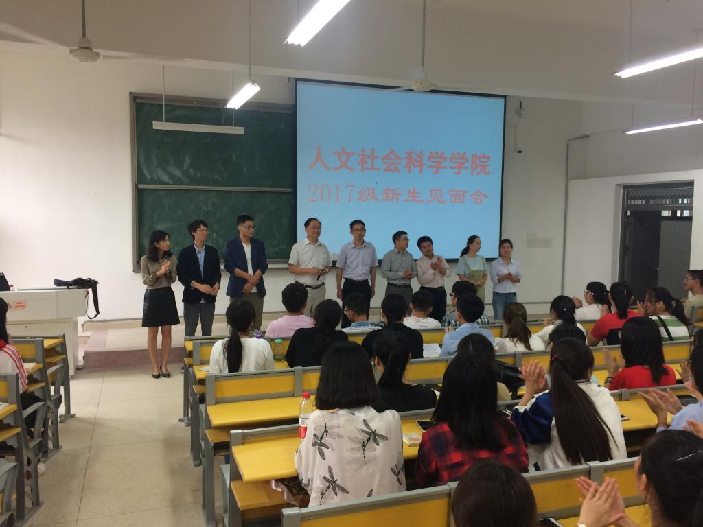 9月9日,人文学院在明理南楼214教室召开2017级新生见面会,学院党总支书记吴云平,院长杨力,办公室工作人员,各系主任,辅导员及新生班主任与2017级全体新生见面,正式启动新生入学教育活动。