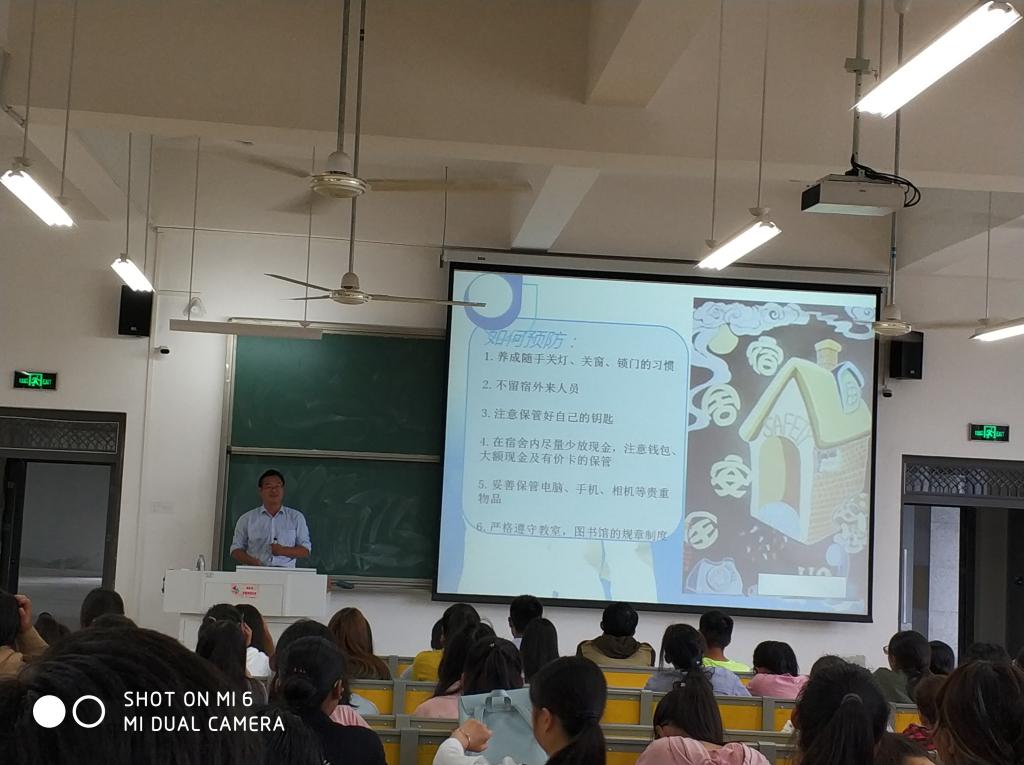 为增强2017级新生安全意识,提高自我保护能力,9月26日中午,人文社会科学学院在明理楼202教室举办面向2017级新生的大学校园安全讲座。