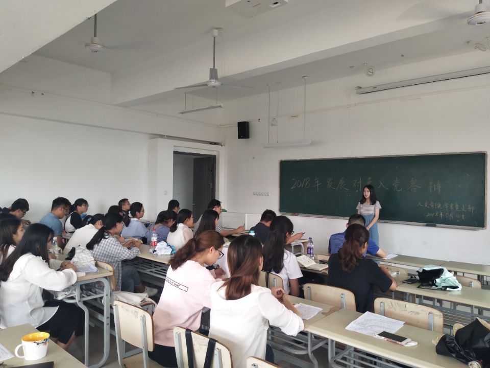 为健全和完善大学生党员发展程序,把好入党关口,落实从严治党的工作要求,5月31日,人文学院学生党支部在崇智楼333教室举行学生发展党员公开答辩会。院党政负责人、教师党支部书记、系主任、辅导员组成答辩小组以及学生党支部的全体党员参加了此次答辩会。答辩会由学生党支部书记主持。