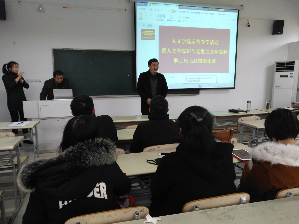 12月28日上午,在崇智楼A333教室,由人文学院分工会和马克思主义学院分工会组织,人文学院开展示范教学暨人文学院和马克思主义学院教职工庆元旦掼蛋友谊赛活动,两院教职工参加了此次活动。