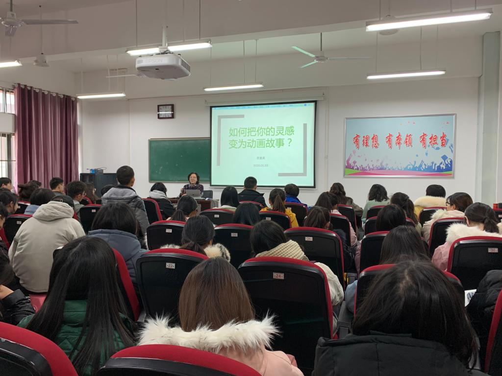 1月3日,中国动画协会副会长兼秘书长,国家二级文学编辑副主编贡建英教授莅临我校,在崇智楼A329报告厅为人文学院师生做了“如何把你的灵感变为动画故事”的专题学术报告。报告会由学院业务副院长方胜教授主持,动画专业、网络与新媒体专业部分教师和近百名同学参加了报告会。