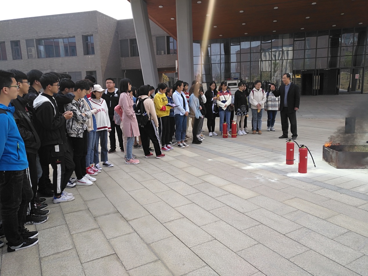 随后,吴云平书记在户外讲解了寝室、实验室、教室、公共场所火灾的预防、火灾自救及逃生方法等消防安全基本常识,演示了灭火器的使用操作方法,并在现场设置模拟起火点,指导学生使用灭火器进行灭火。同学们观看效仿,迅速将起火点扑灭。