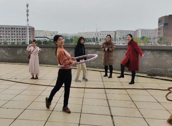 活动包括呼啦圈比赛、跳绳比赛和拔河比赛。回环飞舞的呼啦圈衬托出女教职工婀娜的身姿,上下翻飞的跳绳掩映着女教职工敏捷的脚步。最后的拔河比赛将庆“三八”活动推向高潮,由女教职工组成的“巾帼”队和男教职工组成的“须眉”队展开了激烈争夺,最终“巾帼”队以2:0 的分数取得胜利。